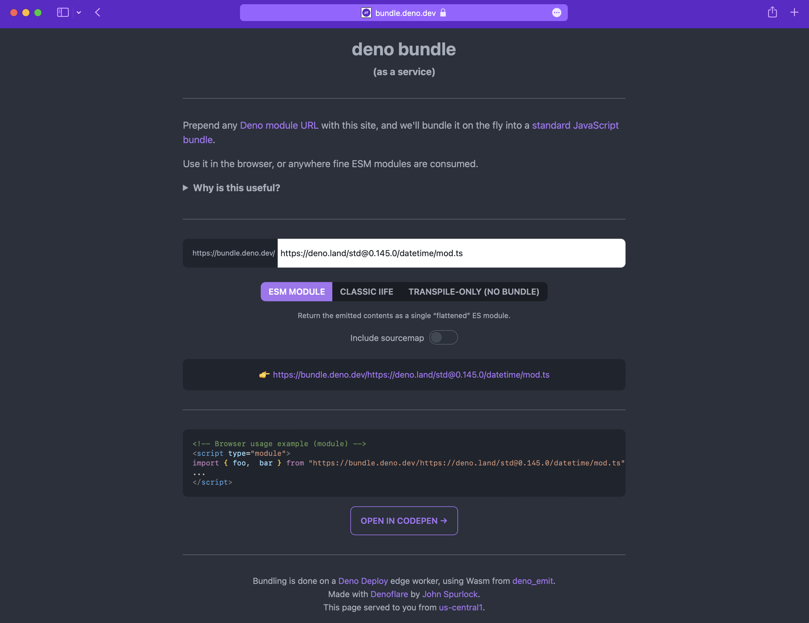 Deno is a great fit for Workers development, the runtime is based on the modern Web Platform , just like Workers, is secure by default , and based on ESM modules .